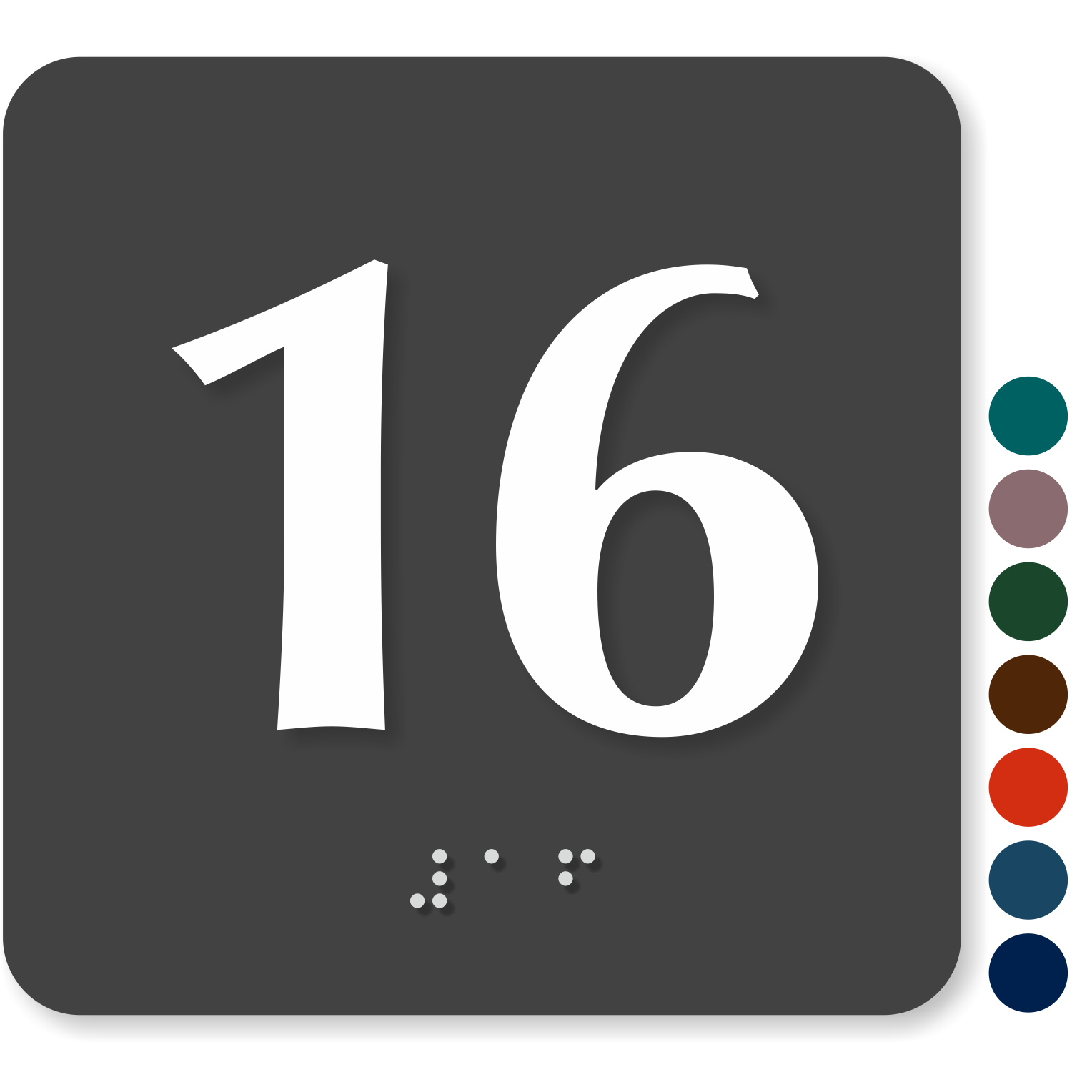 4" x 4" TactileTouchâ„¢ Braille Sign: Sign With Number "16" SE-2681-16