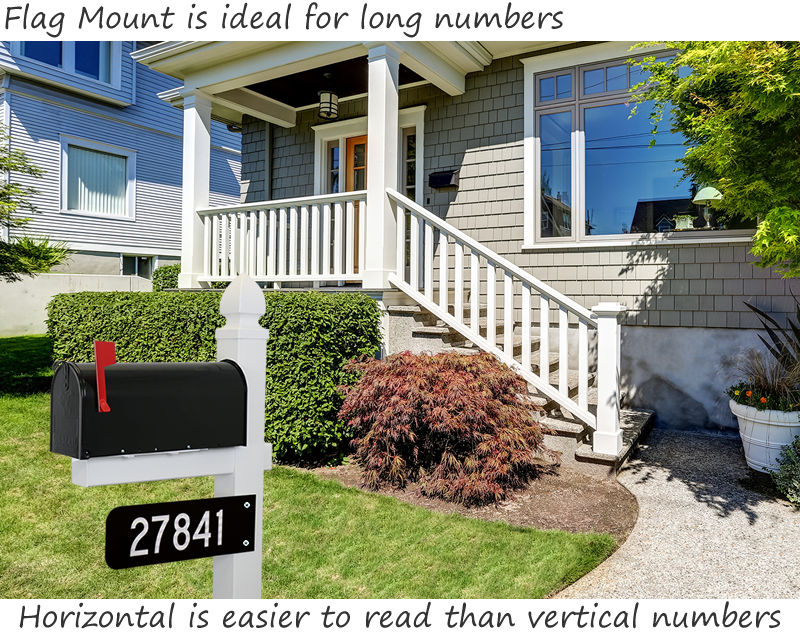 For 911 House Number Signs, you get background color options, but the font remains reflective white. Brass or bronze numbers are difficult to see. Most county ordinances require numbers that contrast with the background. It is a prime requirement that the 911 numbers be clearly visible when approaching either side of the house, even at night. White letters offer a good contrast against a dark background. It should also be kept in mind that the view of the numbers is not obstructed by shrubs, trees, or decorations, such as flags.