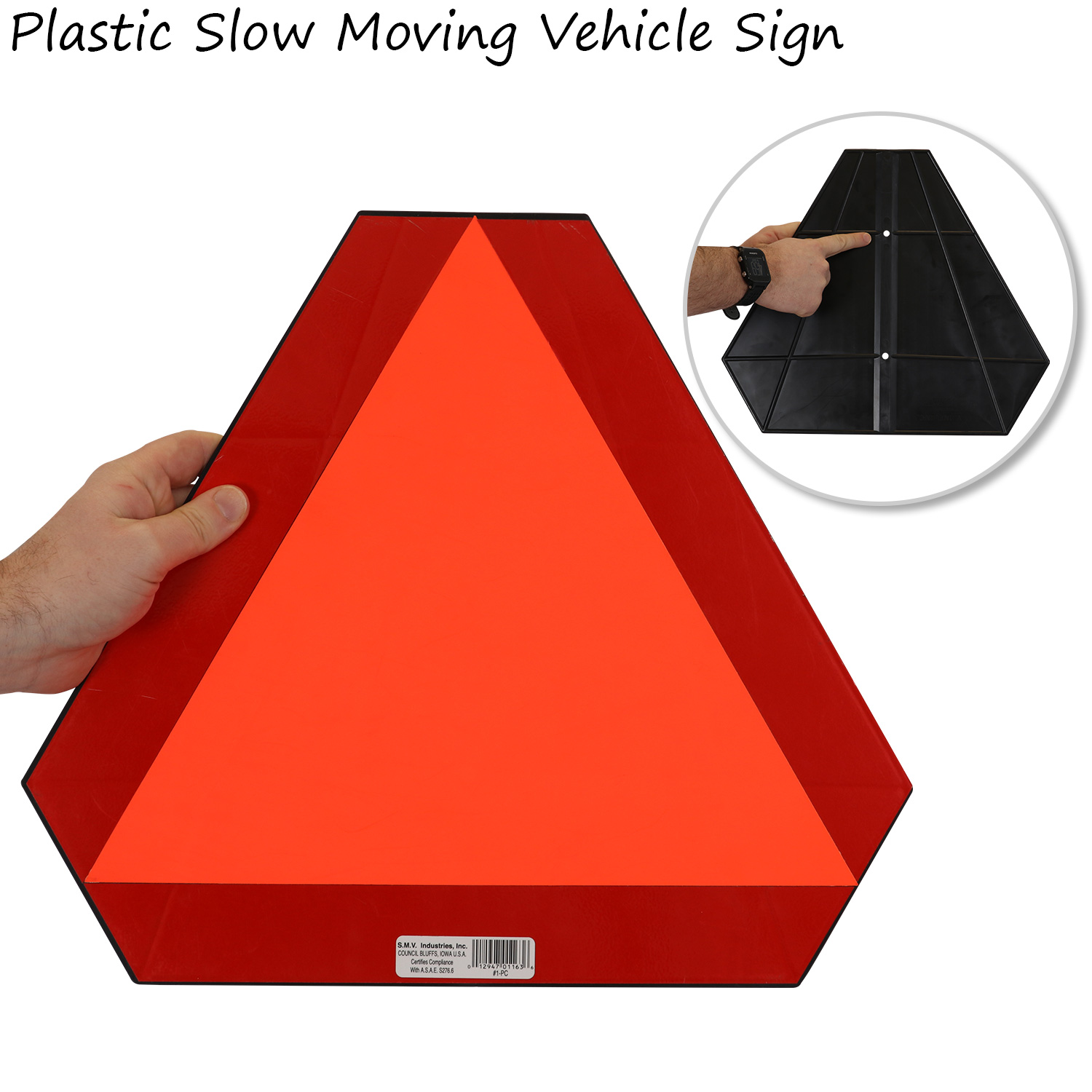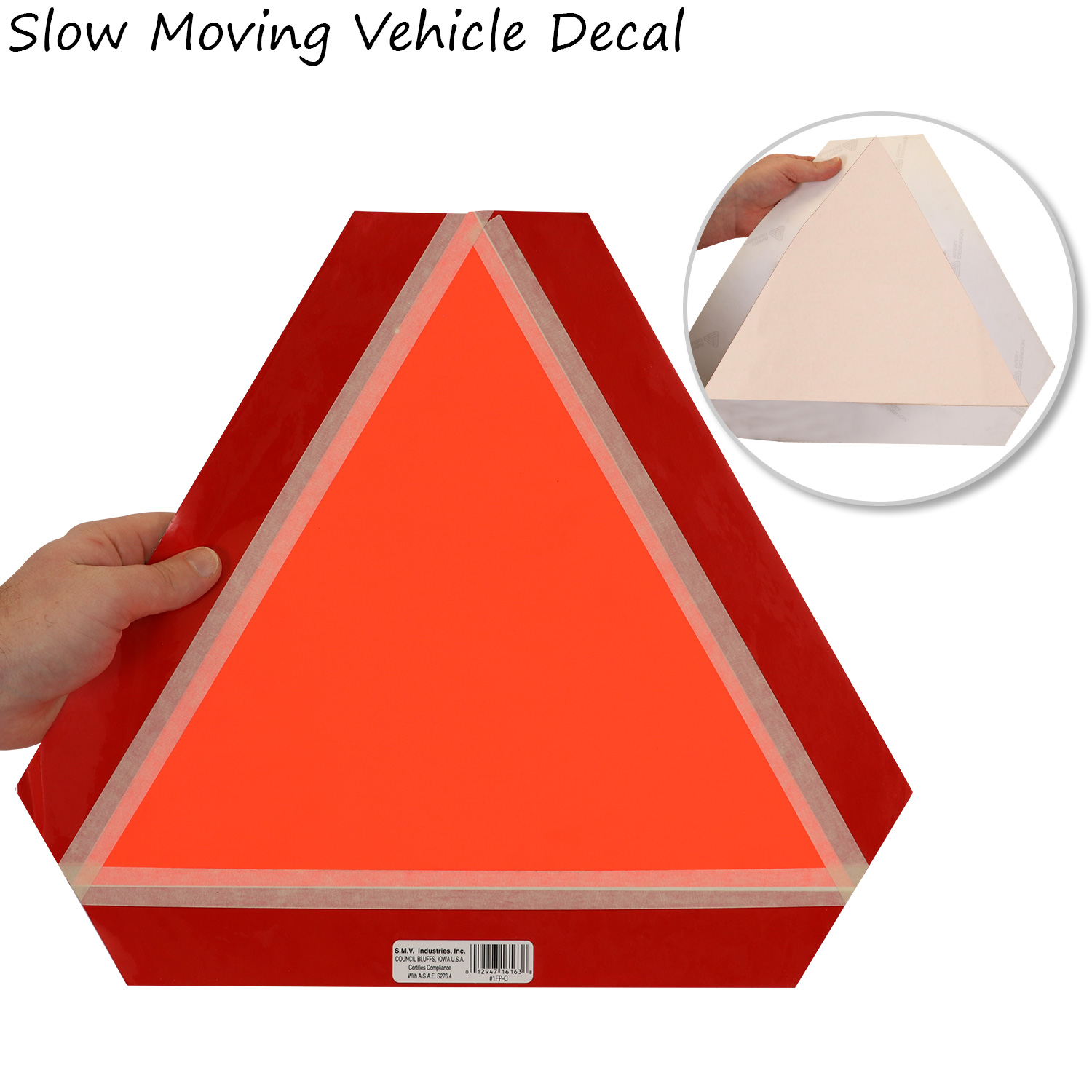 Reflective Slow Moving Vehicle Signs ensure maximum visibility, even at night. Keep roads safer by placing this safety orange triangle sign on your slow moving vehicle that needs to be street legal. Perfect for tractors, forklifts, golf carts, trucks and even horse and buggies! Comes with 2, 3/16" screws and nuts.