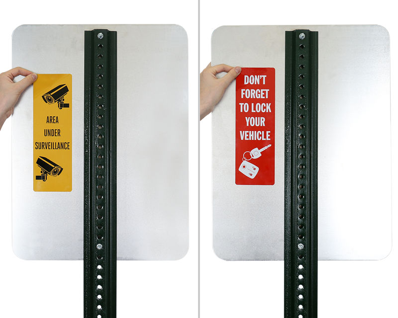 Parking Lot Sign Decals are a great way to broadcast security messages where drivers are most likely to see them on your parking lot signs! Get the most of your parking lot signs with supplement reminders and safety warnings.