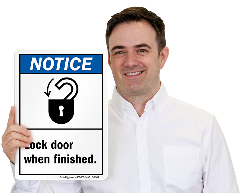 Lock Door When Finished sign