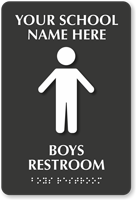 Yes, they are available with raised icons, Grade 2 Braille, and tactile text to meet all accessibility standards for school buildings. Under federal law, restrooms in public schools must be identifiable by all students, making accessibility signs with braille a requirement for permanent bathroom installations.