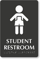 Yes, they are available with raised icons, Grade 2 Braille, and tactile text to meet all accessibility standards for school buildings. Under federal law, restrooms in public schools must be identifiable by all students, making accessibility signs with braille a requirement for permanent bathroom installations.