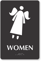 Most of our braille restroom signs meet ADA requirements. You may want to opt for Tactile Touch Braille Women’s Restroom Signs. They adhere to all ADA specifications, as follows-