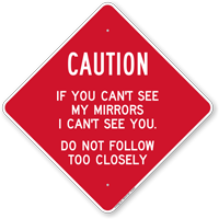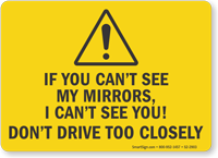 As any truck driver will tell you, "If you can't see my mirrors, I can't see you!" Can’t See Mirrors Signs announce drivers' limited visibility loud and clear. Post Blind Spot Signs to help prevent accidents and ensure that drivers and trucks drive responsibly.