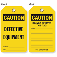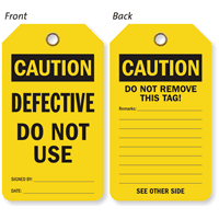 • • Our Caution Tags are meant for hazards that are not immediately life threatening. Examples are Out of Service or Out of Order tags.