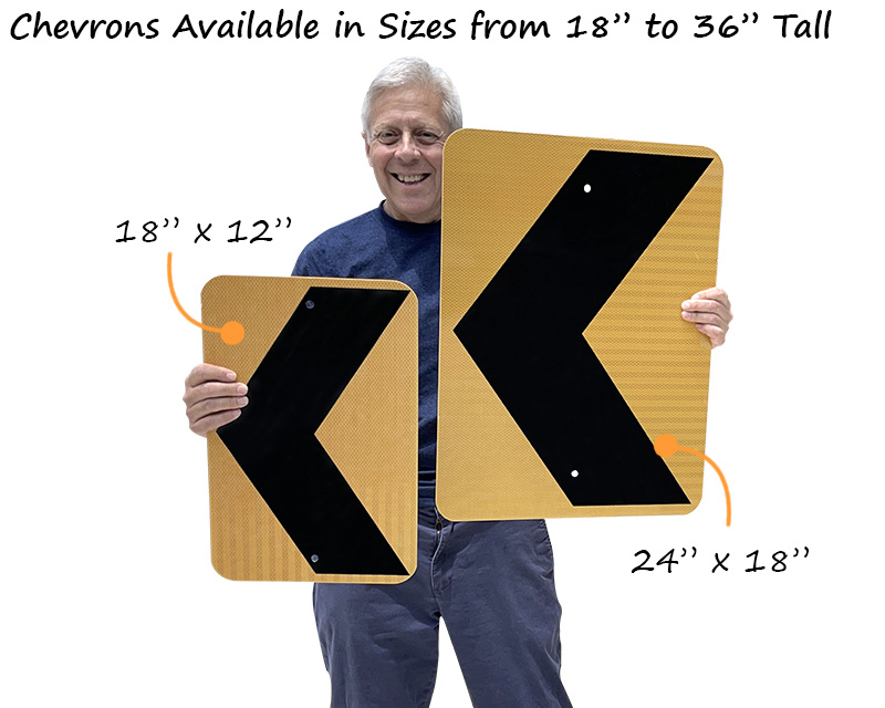 Standard sizes include 18"x24" and 24"x30", though the choice depends on the speed limit of the road and the sharpness of the curve. Larger signs are required on routes with higher MUTCD speed limits to ensure drivers have enough reaction time to navigate the turn safely.