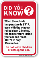 Some states and municipalities have started encouraging or mandating these signs at retail establishments and daycares to combat the rising number of hot car tragedies, though there is no federal law mandating them. Some states have laws against leaving children unattended in a vehicle.