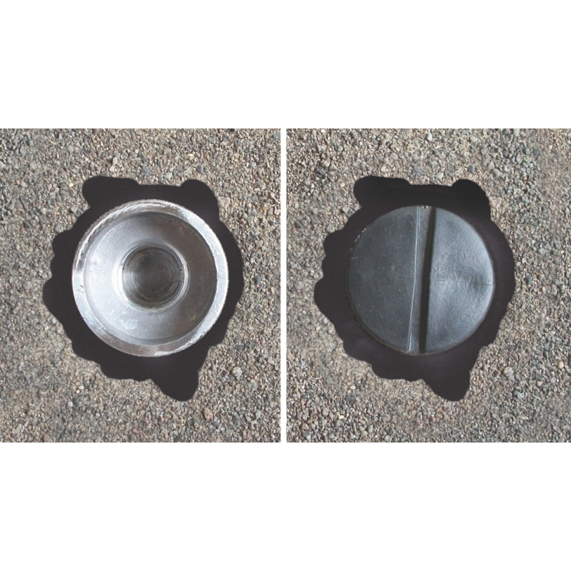 The City Post Anchor Cup Plug Cap is used to keep anchor cups free of dirt and debris while the channelizer is unscrewed from the base.