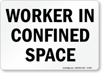 • • Use a Stand-up Floor Sign to prevent unauthorized personnel from entering confined spaces. Or, place a message on the ground with our adhesive Confined Space Floor Sign.