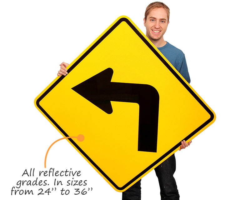Fluorescent colors enhance the performance of reflective curve signs by making the signs uniquely conspicuous at the most dangerous times of the day — dawn and early evenings. They ensure that no important road safety instructions are missed. Fluorescent yellow is approved by the U.S. Federal Highway Administration (FHWA) for use on all yellow warning signs.