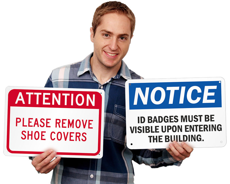 • • Most of the templates below are available in a wide range of sizes. For Custom Facility Signs, size matters. The larger your sign, the more likely it will be seen and obeyed.