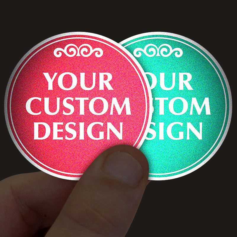 Need to see your label at night? Custom reflective films help your stickers shine bright under headlights or a flashlight — especially helpful in a blackout.
