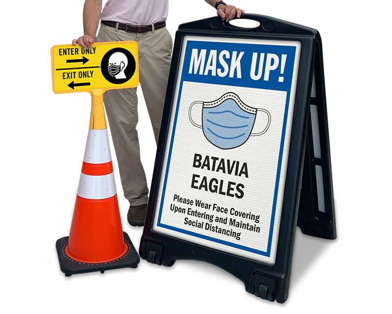 Yes, we offer a variety of highly customizable outdoor social distancing signs in ConeBoss, BigBoss, and FloorBoss styles. These signs are designed to be portable and durable and work excellently on pavements, parking lots, parks, pickups, drop offs, driveways, curbside, outdoor cafes, and more.
