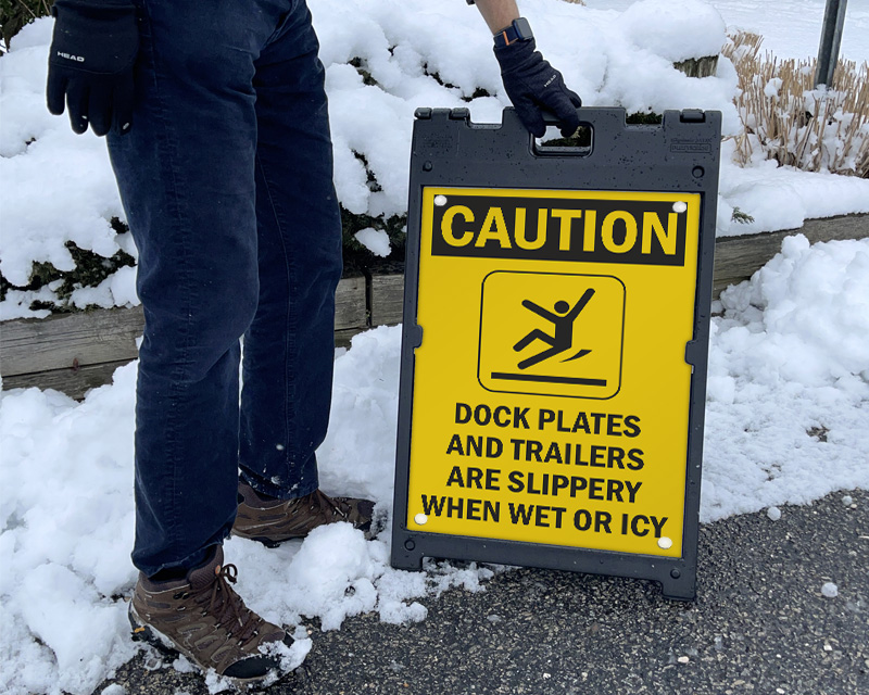 Our custom signs with your targeted safety message, remind everyone about the wet floor in your facility and help prevent an accident.