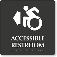 • • Our ADA-compliant Restroom Signs with Arrow feature symbols, raised letters, and California Grade II Braille for maximum accessibility.