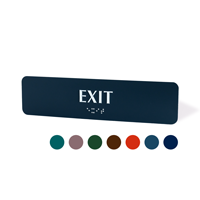 • • Choose from 16 designer colors to match your décor. All Braille Safety Exit Signs are in stock and ready to ship!