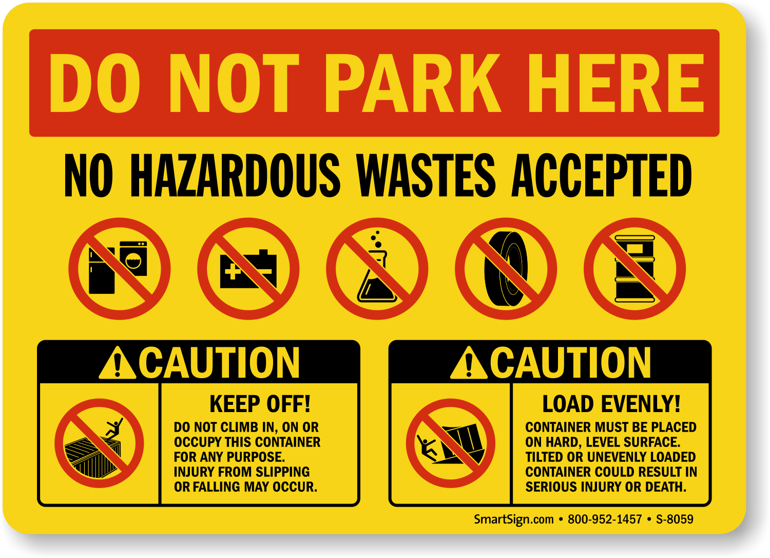 Dumpster Sign: Do Not Park Here, No Hazardous Waste Accepted S-8059 Learn More...