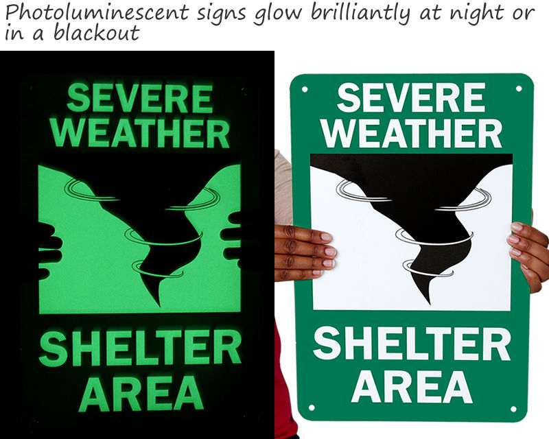 Size: 6" x 5" Material type: Projecting Glo Briteâ„¢ Glow-in-the-Dark Aluminum Sign