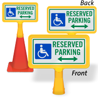 Directional ADA Parking Signs facilitate wayfinding and make the traffic flow seamless. Signs with a directional arrow provide information and guidance to parking space users. For example, a Reserved Parking sign with a handicapped symbol and an arrow helps locate the space kept reserved for people with any physical disability. Instead of looking lost and confused, disabled visitors feel more confident and clear about navigating in your parking structures.