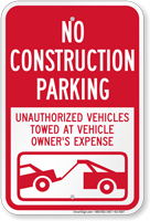 Cars parked in the wrong area can slow down or even prevent construction from proceeding. Post construction parking signs so all drivers are aware of designated no parking areas.