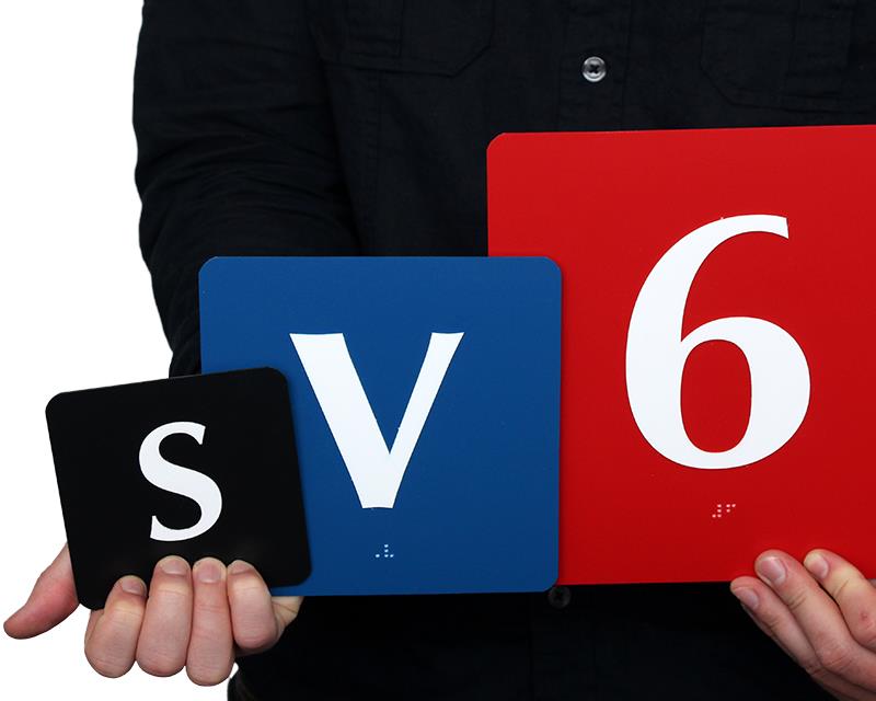 Browse Braille Room Number and Letter Signs by size and legend. Find every letter of the alphabet and numbers 1 to 20. Signs are organized by size and then alphabetically.