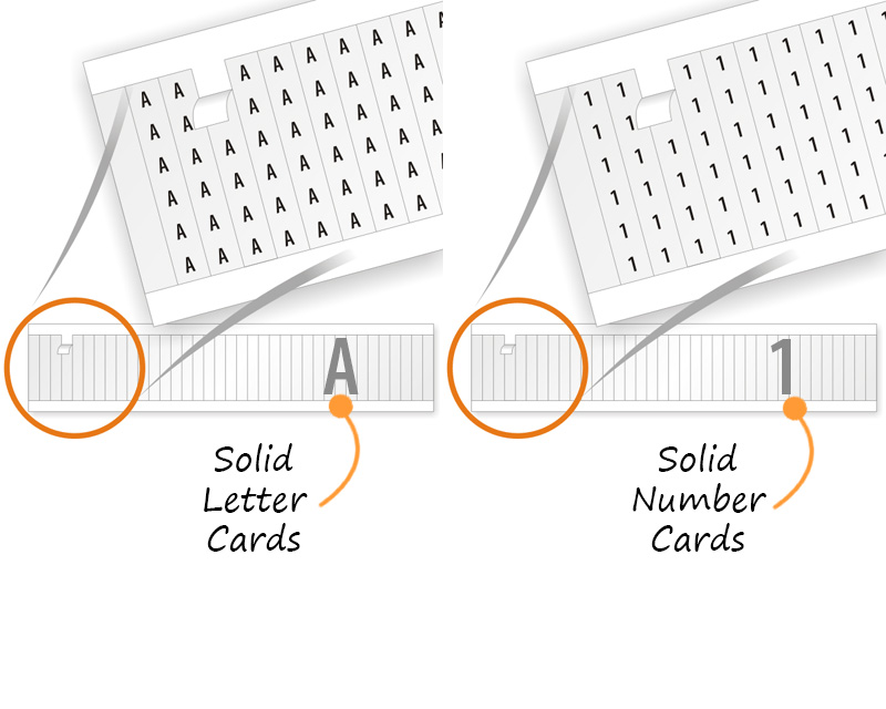 Solid Wire Marker Cards are an industry favorite and are made from the proven general purpose material for construction, product identification and maintenance. Solid Numbers and Letters are the basic building block for all wire markers and are an essential tool you should never be without.