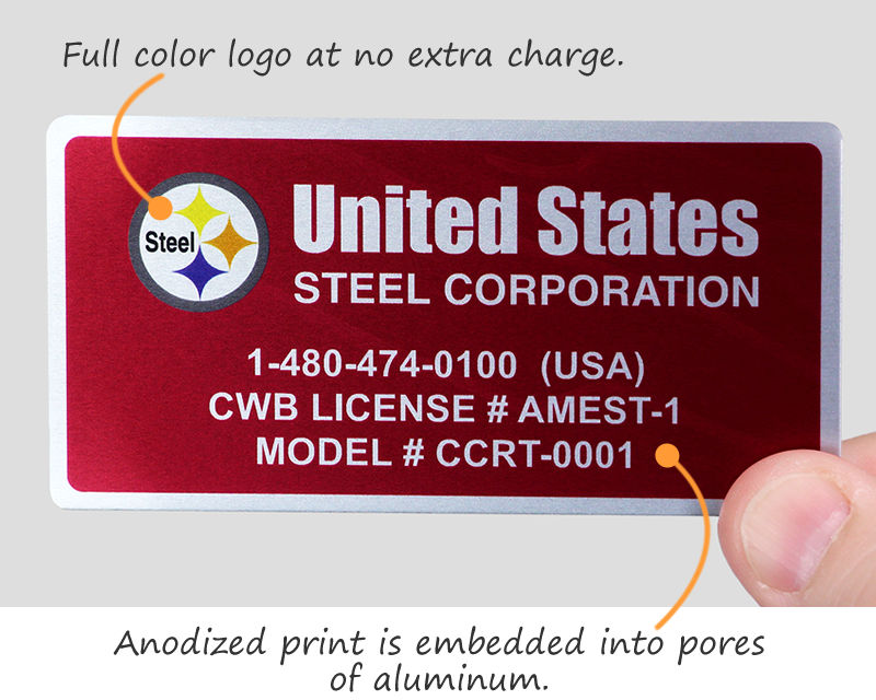 Anodized or Digitally Printed Aluminum offer the ultimate in durability. 100% aluminum, and will outlast high temperatures, weather, chemicals and abrasions.