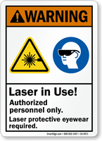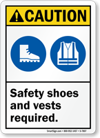 These signs list equipment requirements using the ANSI Z535 format. They combine text with standard symbols for glasses, gloves, and boots. View our ansi ppe signs for various layout options.
