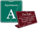 • • Choose from durable Apartment Number Signs, Building Number Signs, Entrance Signs, Directional Wayfinding, Private Property notices signs and more.