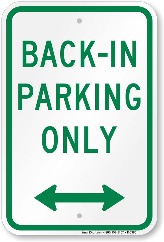 Back-In Parking Only (with bidirectional arrow) Sign