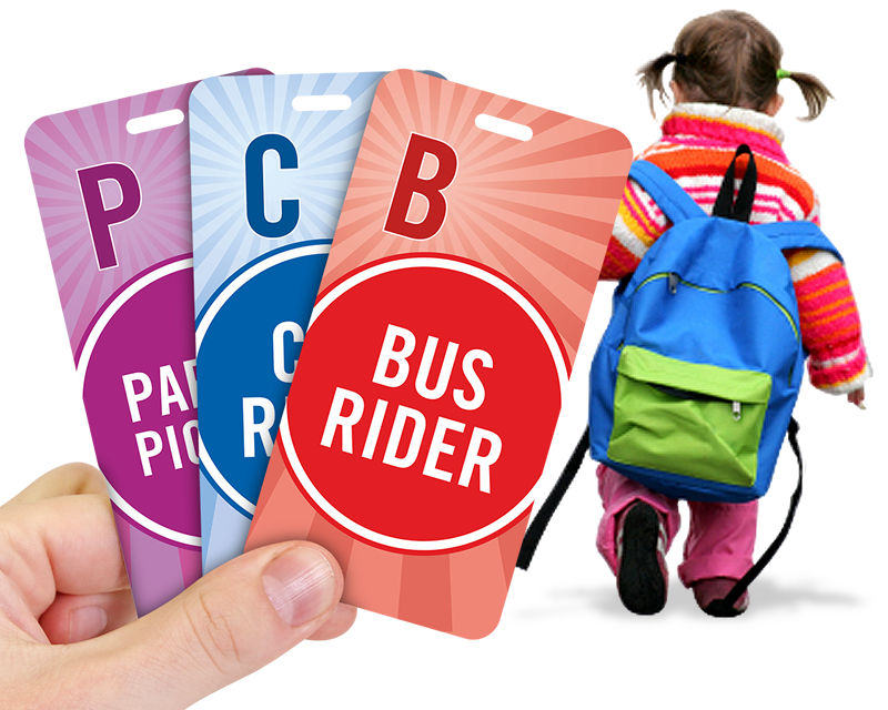 Distinctive and fun designs get noticed and are eagerly added to student’s backpacks. Teachers can immediately see how each student leaves the school at the chaotic pick-up time. Show if the child will be picked up after school – by a car, school bus, parent or caretaker.