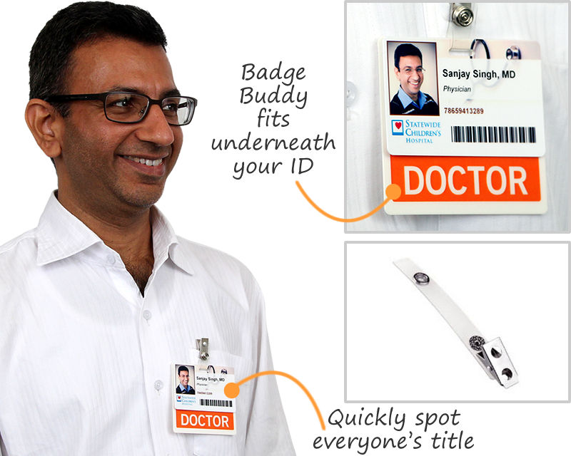 At a glance, spot everyone's title or department with affordable Badge Buddy ID Holders. Your security staff, your patients, and fellow workers will see the person’s title immediately. Investing in Badge Buddies is a simple and effective way to improve workplace safety and make it easier for everyone to connect.