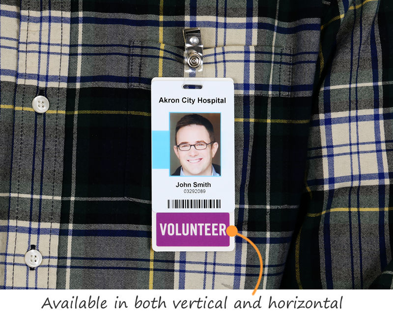 • • Order pre-designed stock options, or design your own with our custom badge buddy templates. Color code by department, vertical or horizontal.