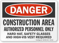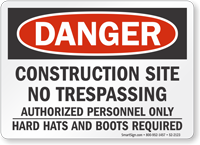 They often feature the project name, the logo of the General Contractor, and key safety rules like unauthorized persons keep out signs, all visitors must register at office, and a list of mandatory PPE.