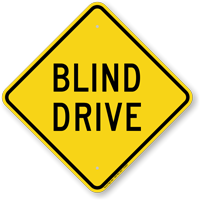 Slow down! Blind corner is ahead. Blind corners exist because of a curve, landscaping, parking cars or a hill. In all cases, a blind corner sign gives everyone advanced warning of the potential for a vehicle to suddenly appear.