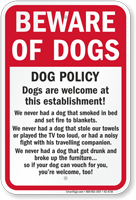 Your dog will appreciate these. You can warn people away with a beware of dog sign. But, if you'd like to have one and your pooch isn't so terrifying, use a funny beware of dog sign instead.