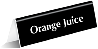 • • Each table top sign can be ordered in a range of colors. Color-code your signs for different food categories like red for beverages, blue for breakfast, and so on.