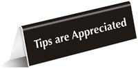 • • Customization is FREE. Just add the name of a food item to our food service signs or use them for table reservations, for front desk of hotels, or for casino tables.