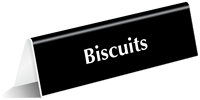 • • Each table top sign can be ordered in a range of colors. Color-code your signs for different food categories like red for beverages, blue for breakfast, and so on.