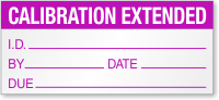 These labels must include the "New Due Date" for the calibration. They also typically have fields for the "Extended By" (authorizing person's initials) and the "Date" the extension was granted, ensuring full traceability for the decision.
