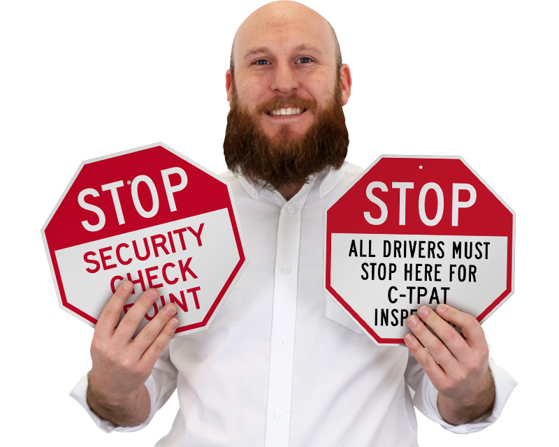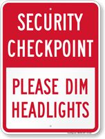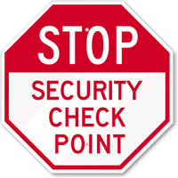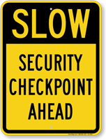 Security Checkpoint Signs advise visitors that they may require inspection at security checkpoints before entry.