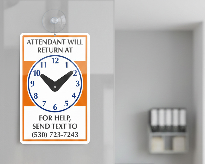 About our Be Back Clock Sign – We Will Return Door Signs