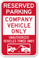 Save a spot for your company car with company parking signs. A strong message also prevents unauthorized parking on your premises. Great for rental offices or businesses with a lot of employees on the go.