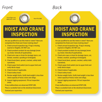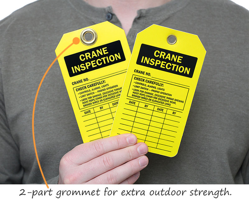 Crane tags are designed for the harshest industrial environments. They are typically made from thick, rigid, all-weather plastic or vinyl that is waterproof and resistant to tearing, chemicals, and grease. You can also view our selection of general durable tags.
