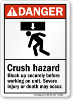 OSHA requires that employers mark hazards where moving parts could cause injury. Using our compliant crush hazard signs helps you meet these safety standards and protects your business from costly fines. More importantly, it keeps your employees safe from one of the most common risks in any manufacturing setting. Our ANSI crush hazard severe injury may occur sign is built to meet OSHA and ANSI Z535 standards for machine hazard communication. For full regulatory details, refer to OSHA Standard 1910.212 on machine guarding.