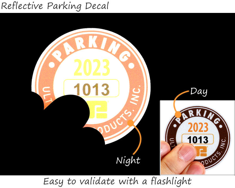 Yes. our custom circle parking stickers are available in reflective material, making them highly visible in low-light conditions. These reflective decals improve safety, security, and recognition for your parking permits, ensuring vehicles are easily identified during nighttime or poorly lit areas.