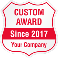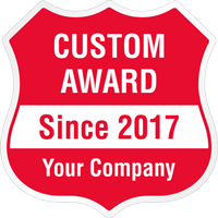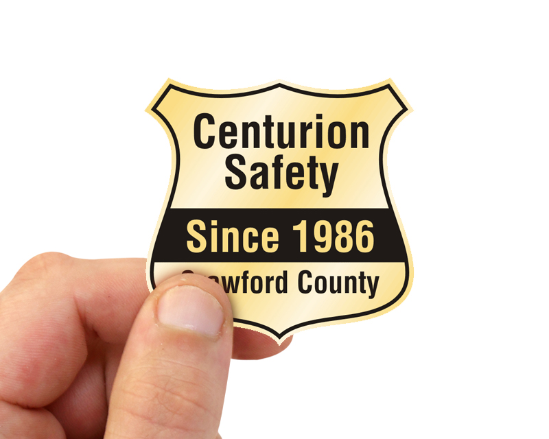 A badge shape is great for security applications and special awards. For metallic look, choose our silver/white reflective. Not only does this label reflect at night, but the silver background gives a professional look to your badge design.