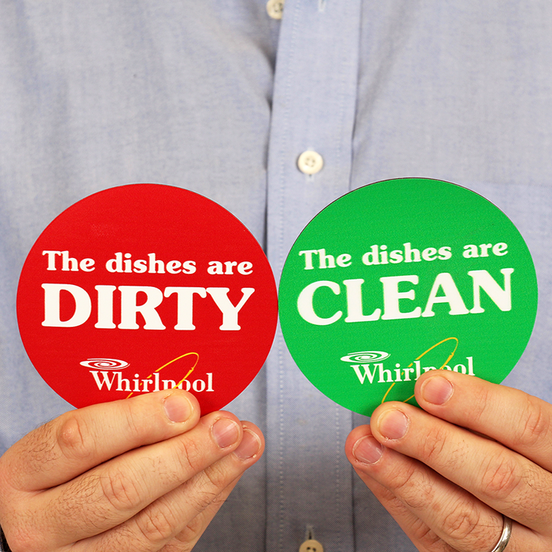 - Custom Double Sided Magnetic Labels. Each side of these custom two-sided 39 mil thick magnets can show a different message. It’s easy to flip your message to quickly show a new status.