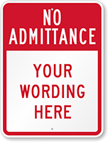 No Admittance Signs enforce your safety program. Choose from our assorted templates and add your own text: the best way to ensure that no one violates your private space.